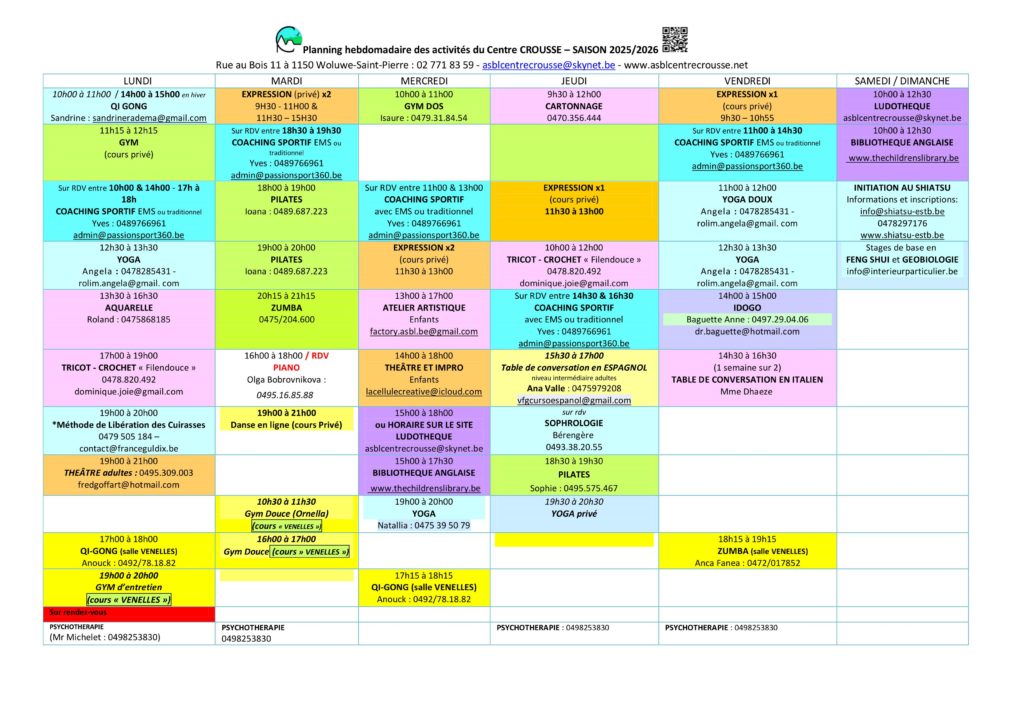TOUS LES COURS SONT ACCESSIBLES sur INSCRIPTION  PREALABLE