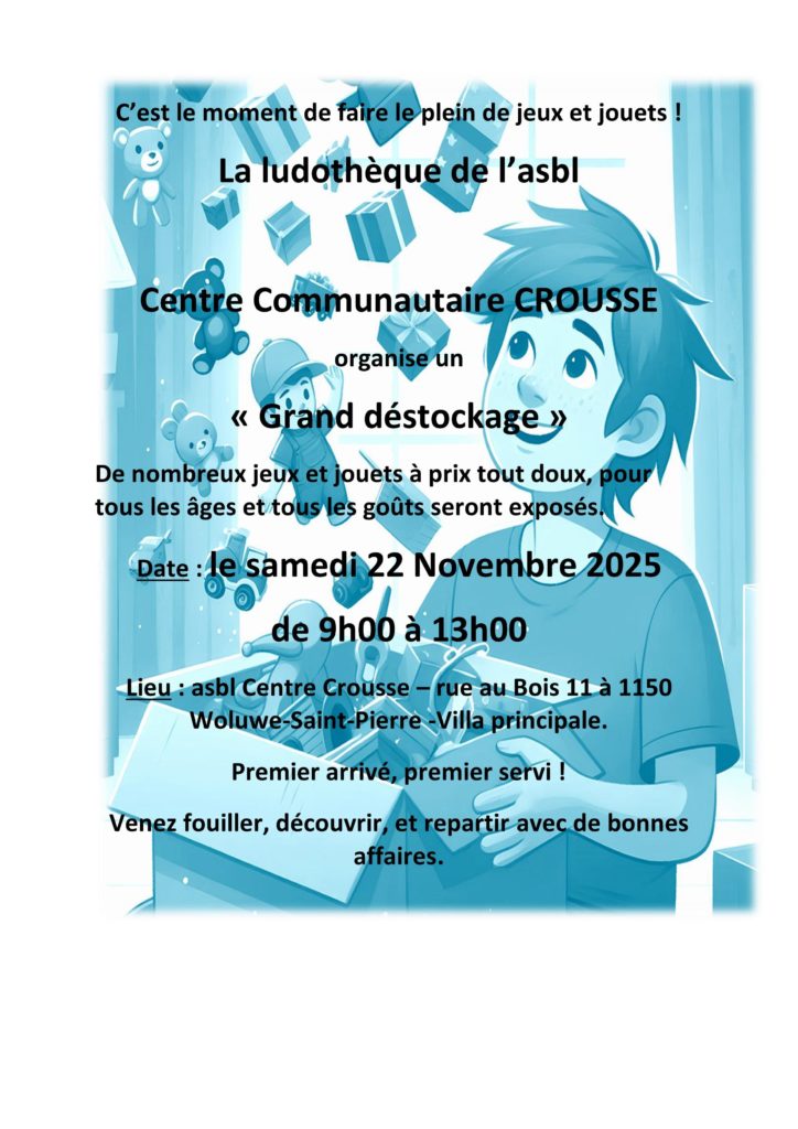 Un problème par rapport à cet horaire, envoyez un mail à « asblcentrecrousse@skynet.be » et nous trouverons un rendez-vous à votre meilleure convenance. Notre but étant de pouvoir récupérer nos jeux!